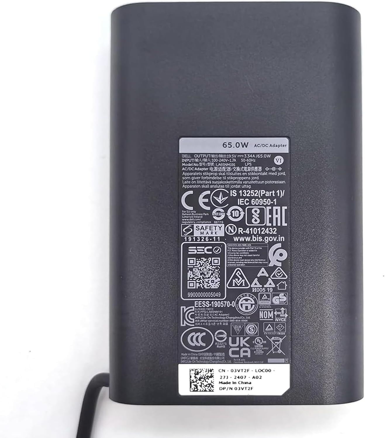 - Output: 19.5V 3.34A ~ 65W; Input: 100-240V ~ 1.5A, 50 – 60Hz. Connector Tip: 7.4mm*5.0mm,supports fast charging