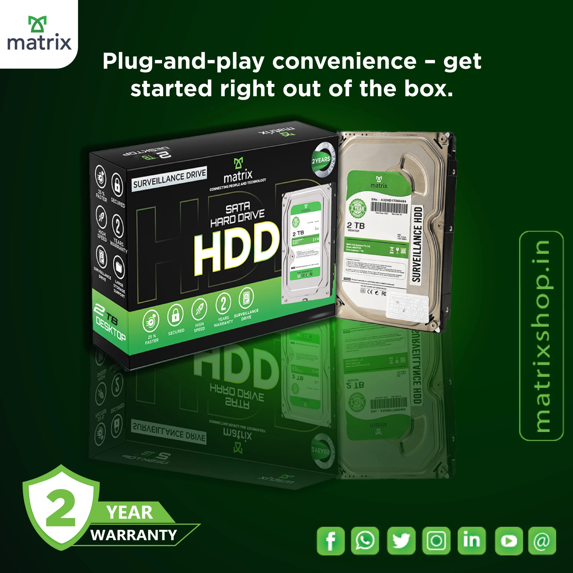 Be the first to review “Matrix 2TB Surveillance Hard Drive, 3.5-inch SATA, 7200 RPM, 64MB Cache, Desktop HDD”