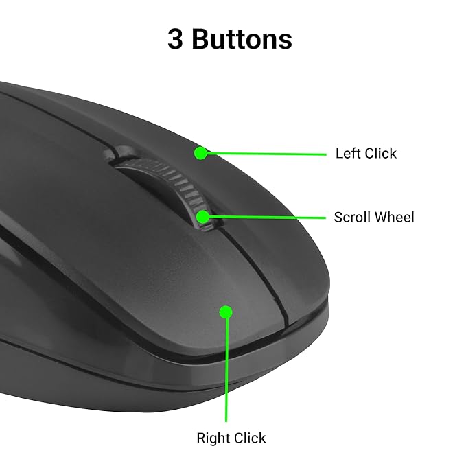 - 3 buttons: The mouse comes with 3 buttons – right, left, and middle scroll button
