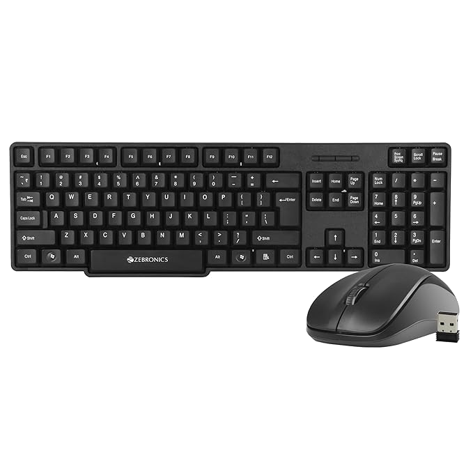 Zebronics Zeb-Companion 500 2.4GHz Wireless Keyboard & Mouse Combo, USB Nano Receiver, Chiclet Keys, Ultra Silent, Power On/Off Switch, Rupee Key, for PC/Mac/Laptop